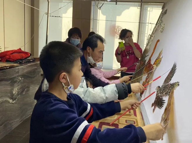 | 和世界举重冠军侯志慧分享皮影表演技巧 | ||||