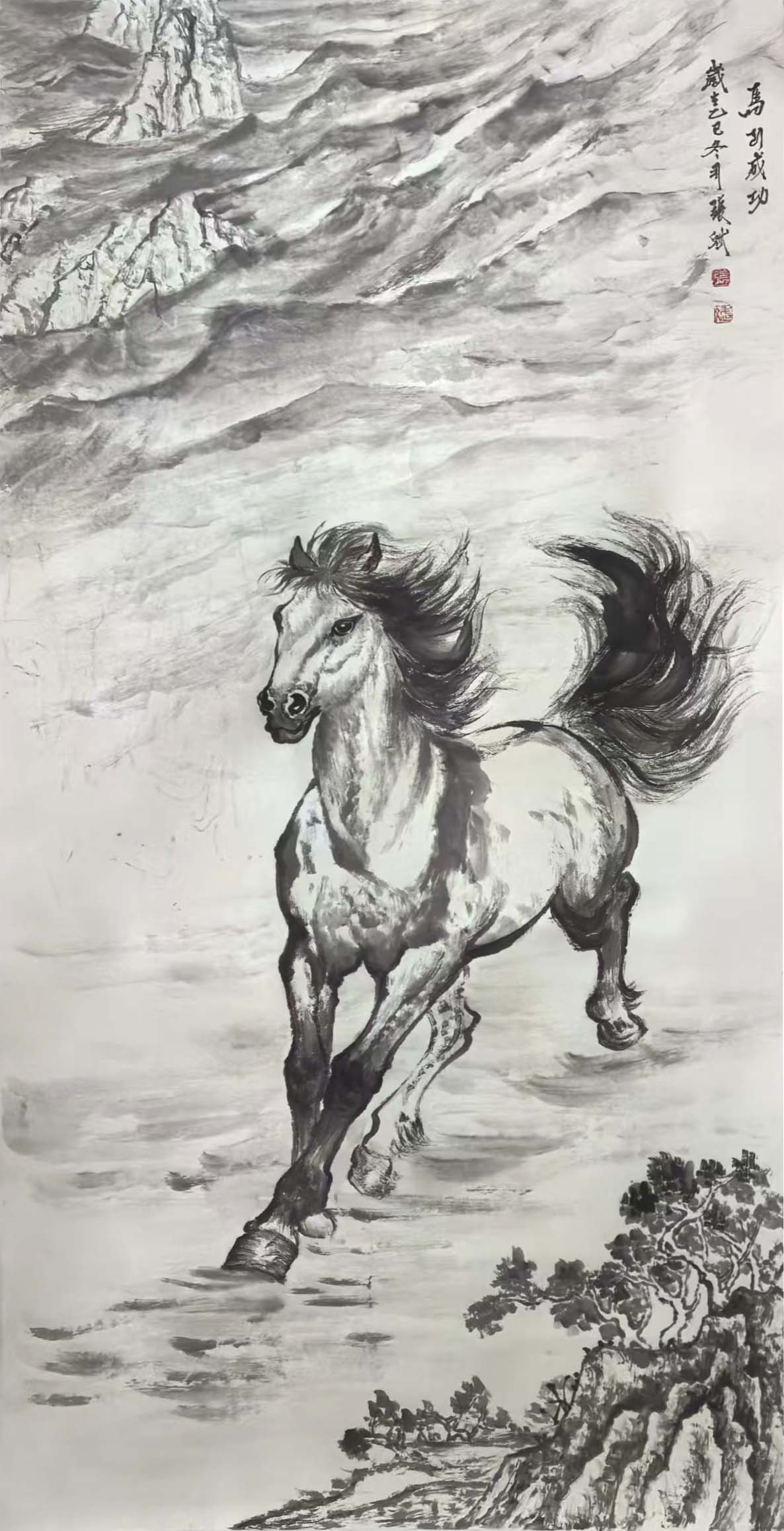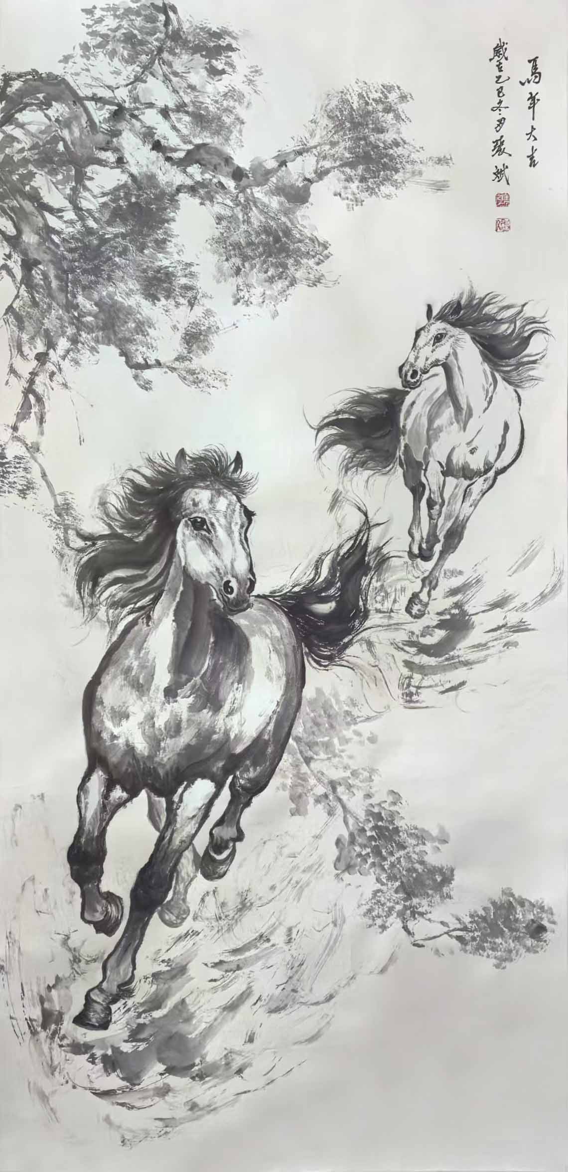 此次三八国际妇女节,恰逢丙午马年,张斌特意创作骏马主题作品献礼佳节。她将巾帼情怀与生肖文化完美融合,笔下骏马矫健昂扬、气势恢宏,工笔细腻刻画鬃毛形态,写意挥洒勾勒身姿神韵,笔墨间既有传统国画的古韵,又有新时代女性的自强气场,既是对广大女性同胞的美好祝福,也是自身七旬依旧奋进不止的精神写照。